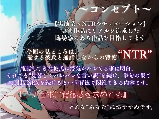 ★【実演×NTRシチュ】彼氏に電話で言い訳しながらご主人様と懇願絶頂『木咲かえで』【DLsite】 ASMR/ボイス 2025.05.24 サークル名 イタズラ屋 シリーズ名 【実演×NTRシチュ】 シナリオ イラスト 声優 木咲かえで ご主人様との浮気sex中に彼氏から電話が・・・。疑われながら言い訳をするも、ご主人様の種付けピストンは止まらない。次第に彼氏に言い訳していることを忘れ、欲望の赴くままにご主人様を求めてしまう 「・・・ごしゅじんさまぁ・・・もっと突いてぇ・・・」
